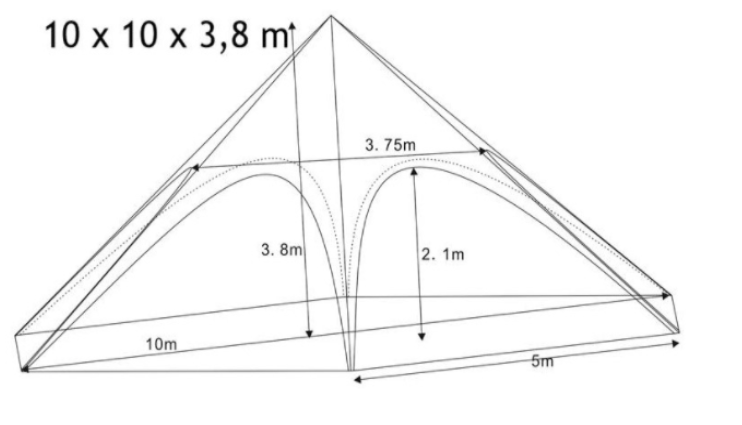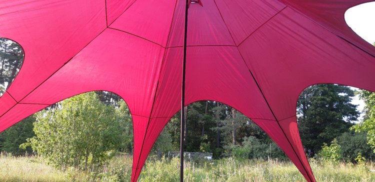 Materjal polüester. Kaetud kasulikku pinda 11,05 m2. Tähttelk muudab ürituse kindlasti silmatorkavamaks oma erilise kuju poolest.
